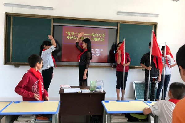 在全校各班级不同的各种活动方式中,队员们还表达了对党的十九大召开的喜悦心情和对国家繁荣昌盛的美好祝愿,在心里默默祈祷,期待祖国未来会更好。